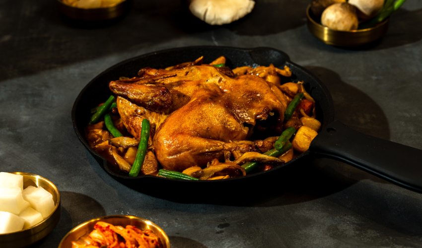 Một trong những điểm đặc biệt khiến Guun Guun Chicken trở thành điểm đến quen thuộc của những tín đồ yêu thích ẩm thực Hàn Quốc chính là món Gà Nướng Củi Sốt Guun Guun, món ăn độc đáo và đậm đà hương vị mà bạn chỉ có thể tìm thấy ở đây, tại Hà Nội. Điều thú vị là, đội ngũ đầu bếp của quán đã trực tiếp sang Hàn Quốc để học hỏi và mang về bí quyết chế biến món gà nướng củi chuẩn vị Hàn.